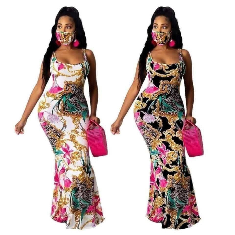 - O mască de protecție din același material/imprimeu ca rochia.