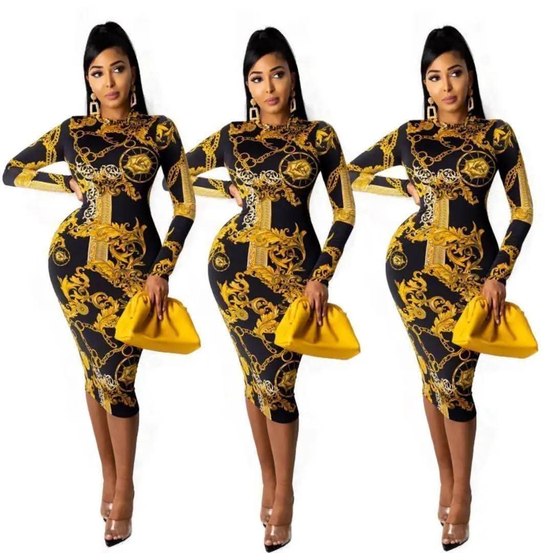 Rochie Midi Elegantă cu Imprimeu Baroc Auriu – Strălucire și Eleganță pentru Ținutele Tale de Seară!
